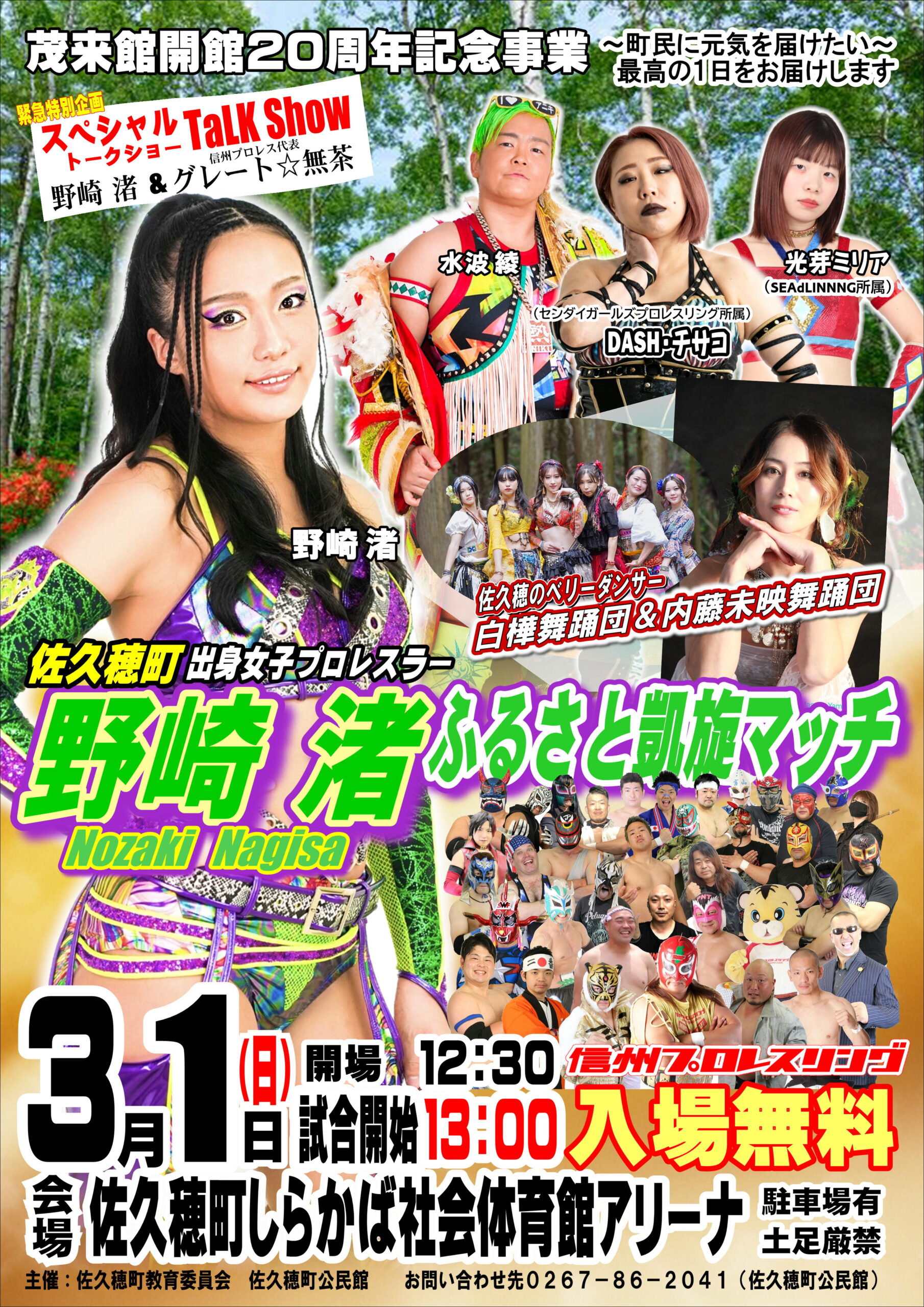 佐久穂町出身の野崎渚選手凱旋マッチに信州プロレスも参加いたします。